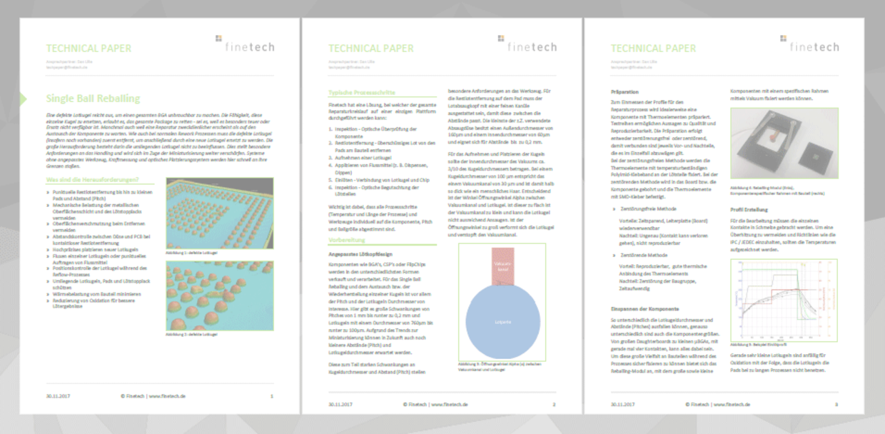 Abstract: It takes only one defective ball to render an arrayed component unusable. The ability to replace just a single sphere enables a package to be repaired – one that may be expensive, may otherwise be unavailable, or where reworking is more expediant than waiting for a replacement. As in most common SMD rework processes, at first the defect solder ball (if still existing) needs to be removed and then replaced by a fresh one. The actual challenge is to avoid harm to adjacent solder balls during the reflow process. This demands special handling solutions which will need to become even more refined if the trend towards component miniaturization continues. Rework devices without adapted tooling, force control and high-resolution optical alignment and placement systems will hit their limits pretty soon.